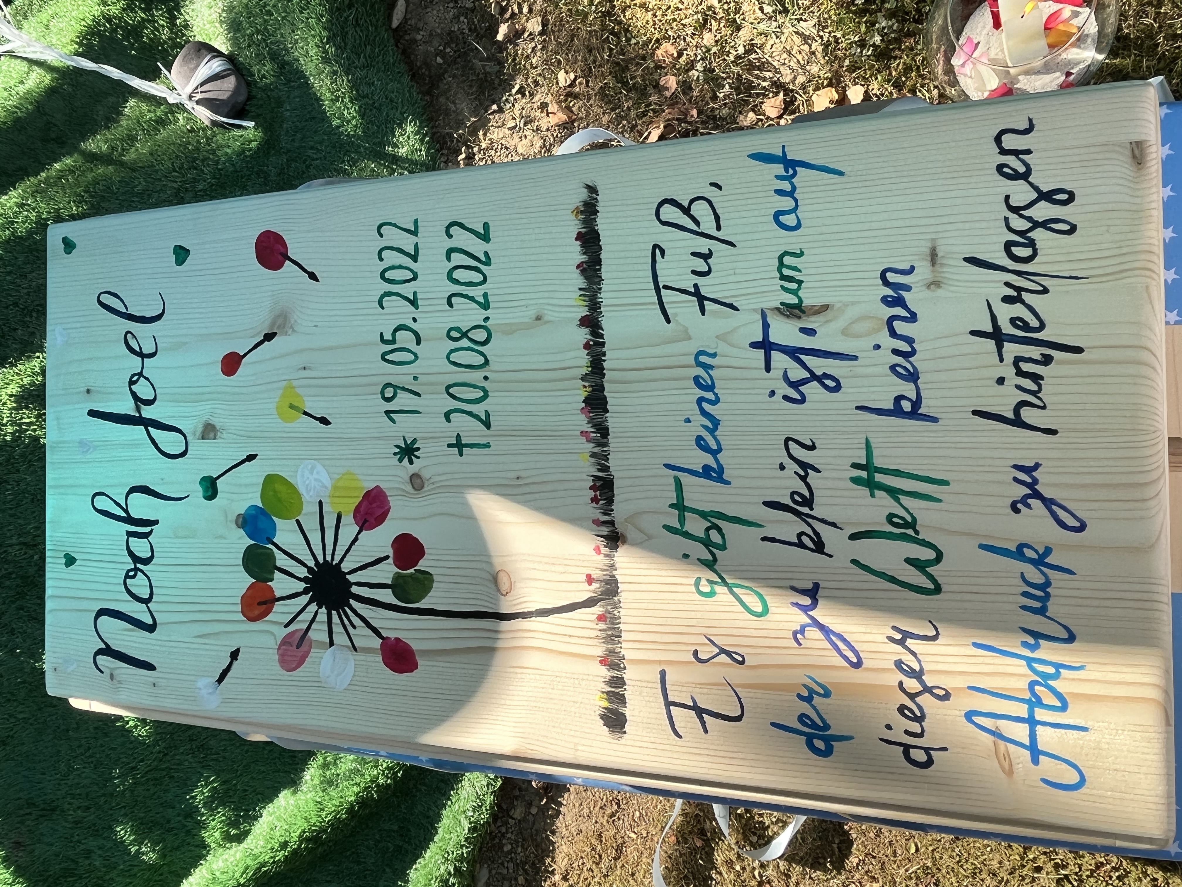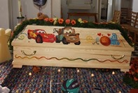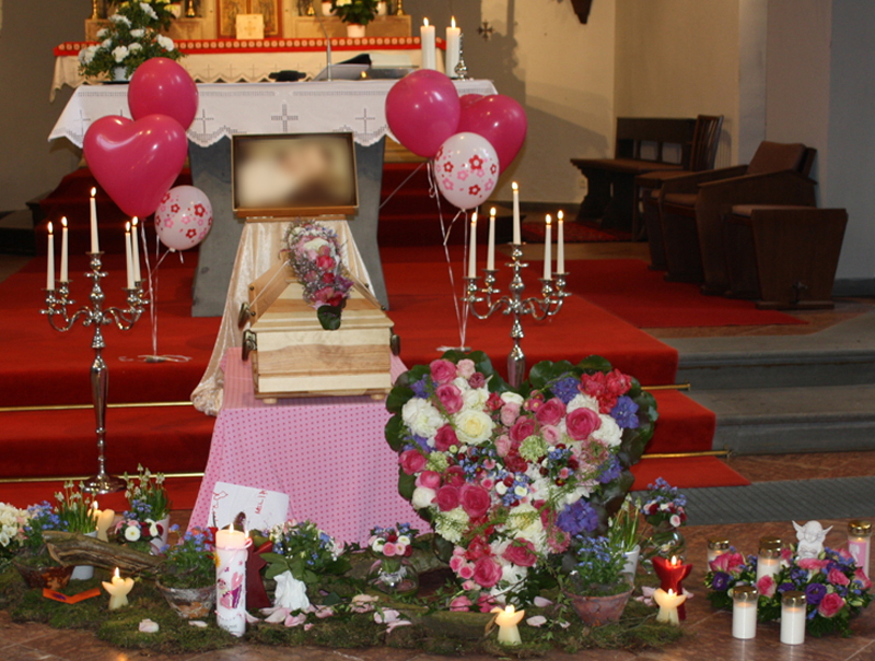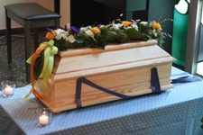 Wenn Sie möchten, dürfen Sie Ihr Kind alleine oder mit uns gemeinsam noch einmal waschen, eincremen, ankleiden und in den Sarg einbetten. Sie können bei Bedarf den Sarg oder die Urne innen und außen nach Ihren persönlichen Vorstellungen gestalten. Es gibt u.a. die Möglichkeit Körperabformungen von der Hand und/oder vom Fuß zu nehmen oder eine Haarsträhne als bleibende Erinnerung zu behalten.